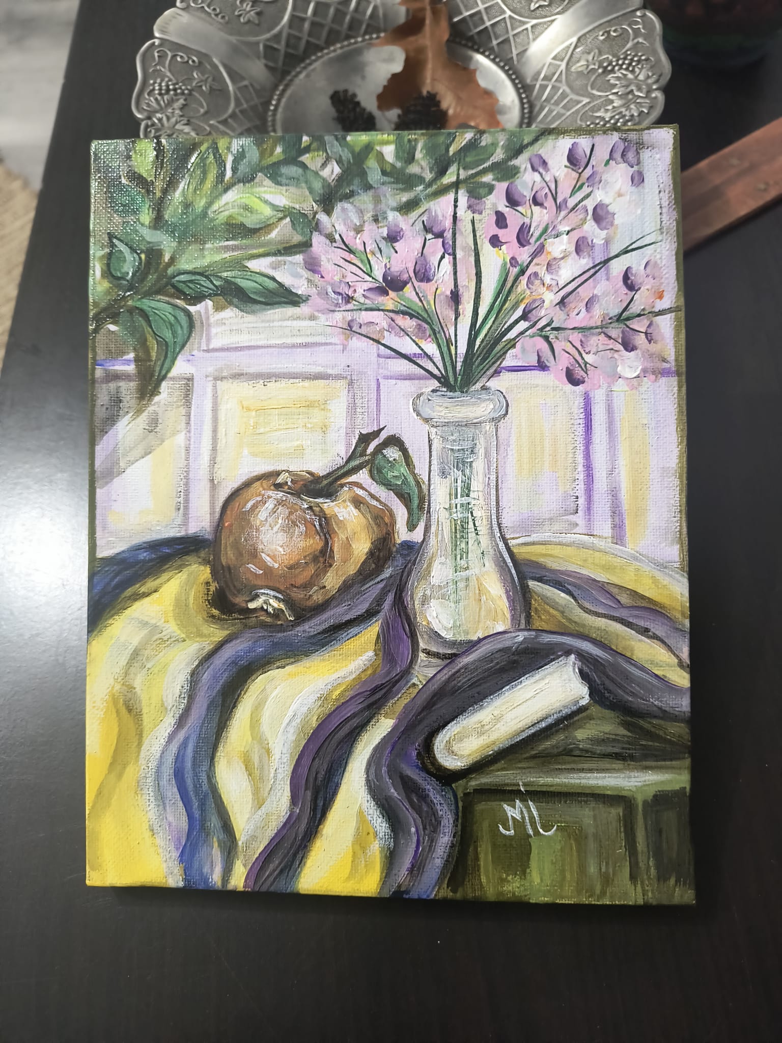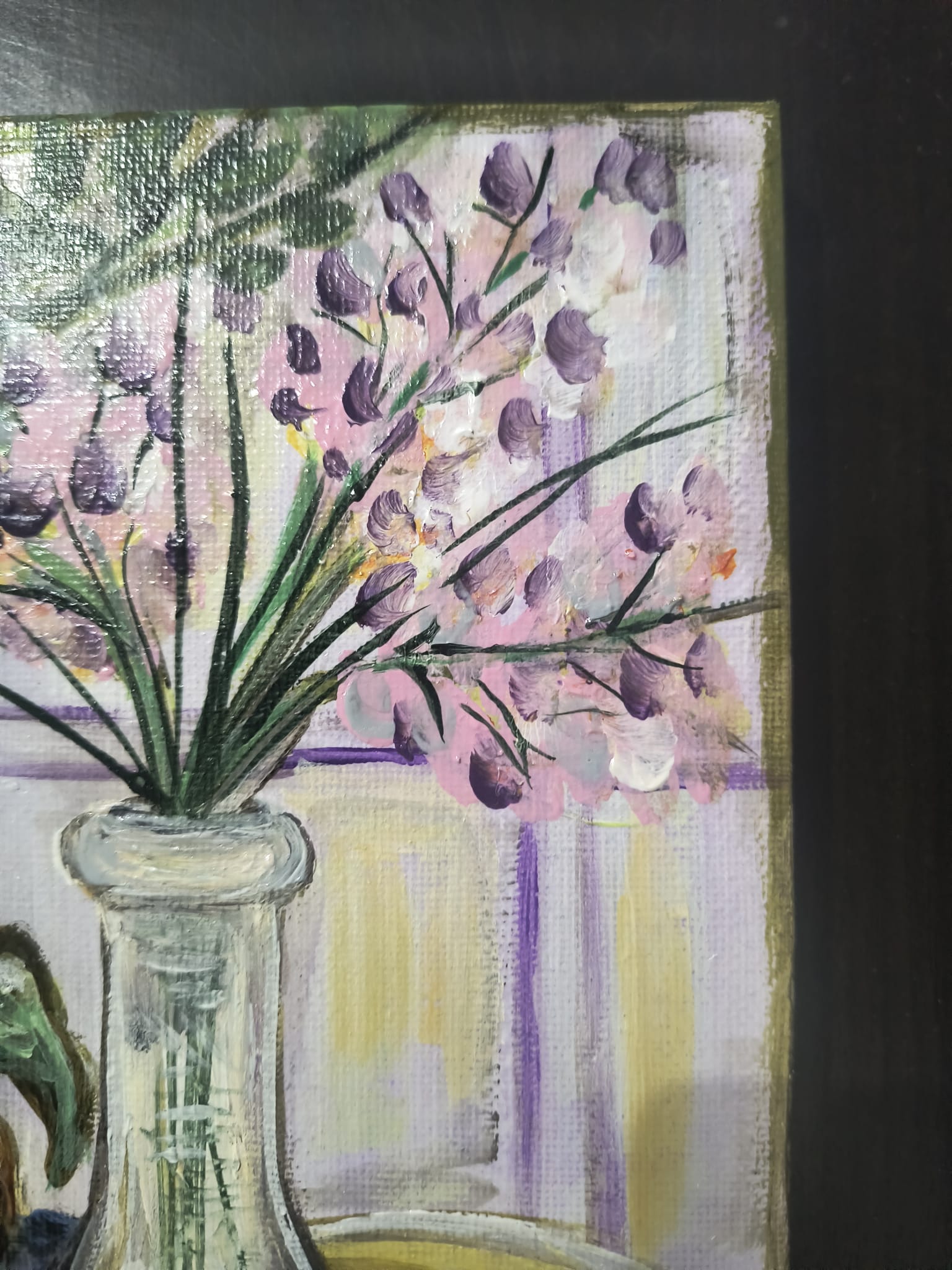 Această lucrare nu este doar o natură statică – este o stare. Stârnește liniște, familiaritate și o bucurie discretă. Te face să încetinești, să respiri, să observi.